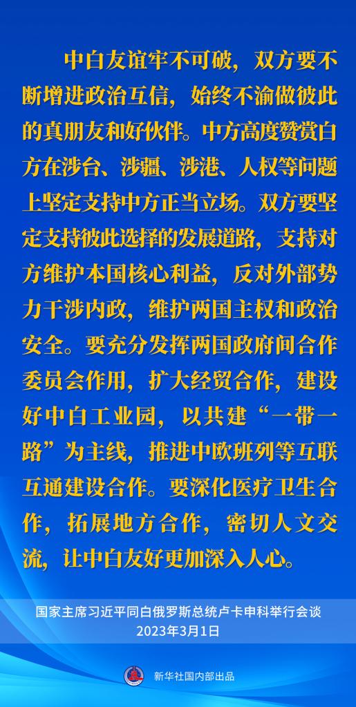 3月1日,国家主席习近平在人民大会堂同来华进行国事访问的白俄罗斯总统卢卡申科举行会谈。一起来看习近平主席的谈话要点。