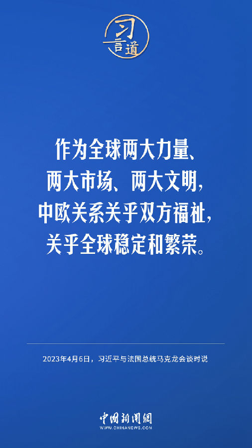 4月6日下午,国家主席习近平在人民大会堂同来华进行国事访问的法国总统马克龙举行会谈。习近平指出——