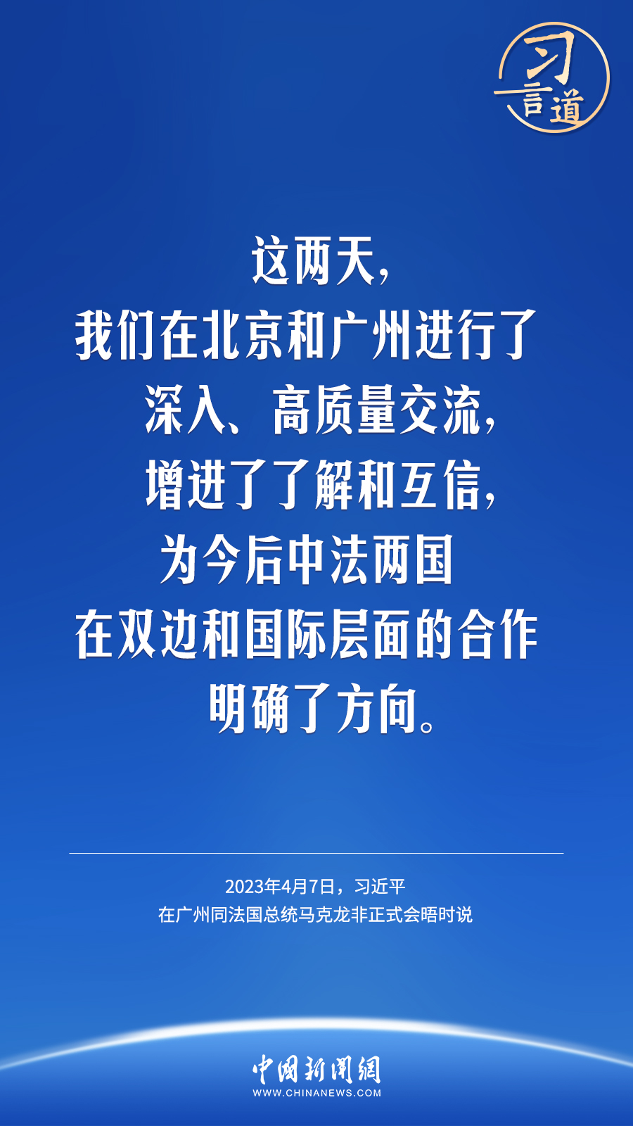 4月7日下午,国家主席习近平在广东省广州市松园同法国总统马克龙举行非正式会晤。习近平指出——
