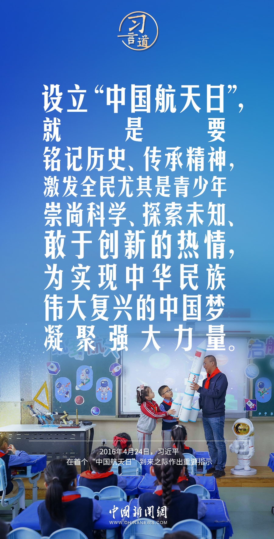 4月24日是中国航天日,今年的主题为“格物致知,叩问苍穹”。习近平总书记高度重视航天事业发展,多次鼓励青少年要崇尚科学、敢于有梦。