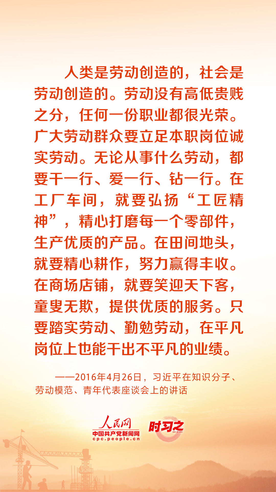 人民创造历史,劳动开创未来。党的十八大以来,习近平总书记始终心系全国广大劳动者,激励广大劳动者在平凡岗位上续写不平凡的故事。在“五一”国际劳动节到来之际,让我们重温总书记的谆谆话语,用辛勤劳动为经济社会发展贡献力量。