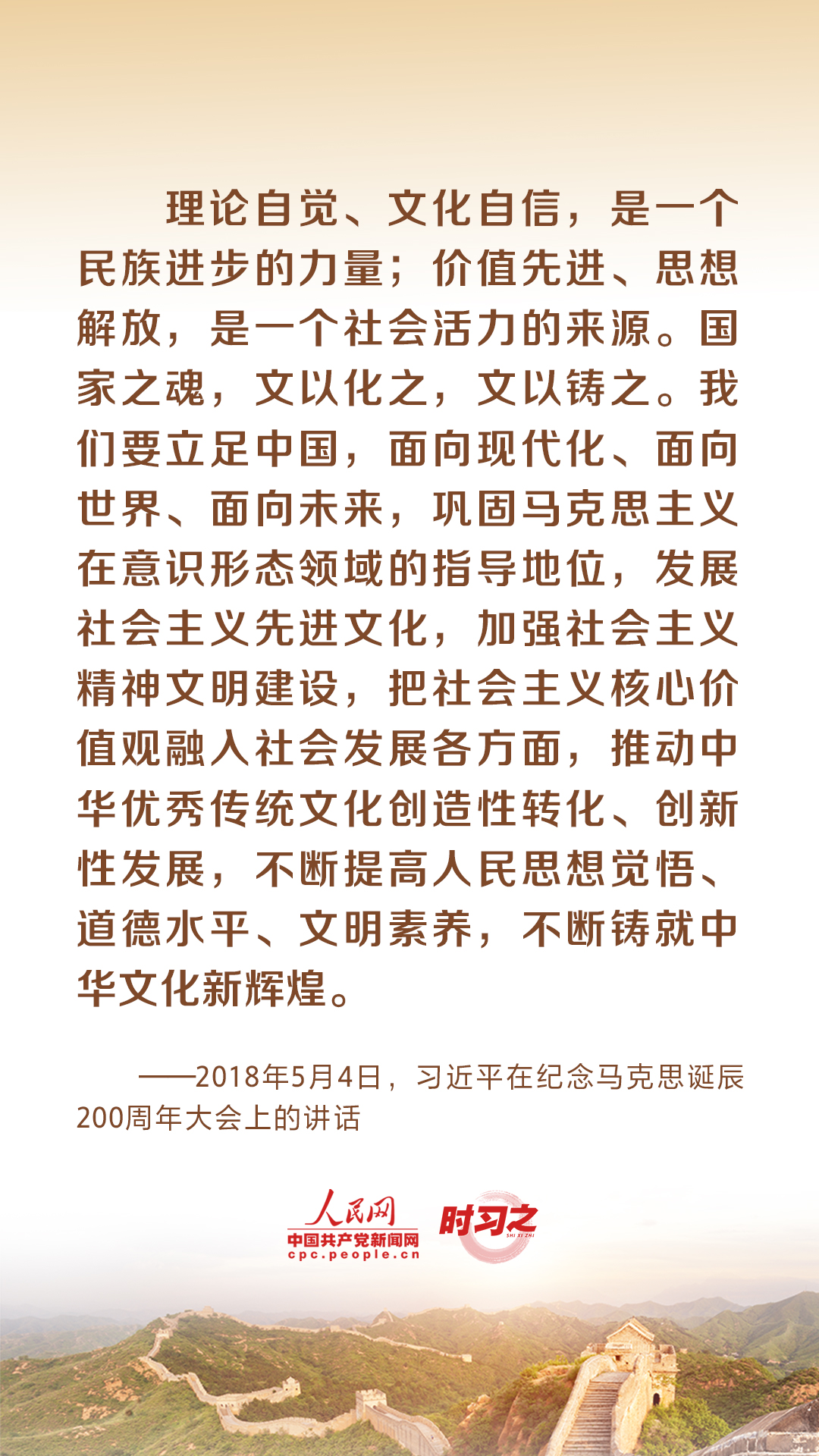 “理论自觉、文化自信,是一个民族进步的力量;价值先进、思想解放,是一个社会活力的来源。”党的十八大以来,习近平总书记就文化建设提出了一系列新理念新思想新战略,引领中华文化创造性转化、创新性发展。推动弘扬和发展社会主义先进文化,习近平多次作出重要阐释。
