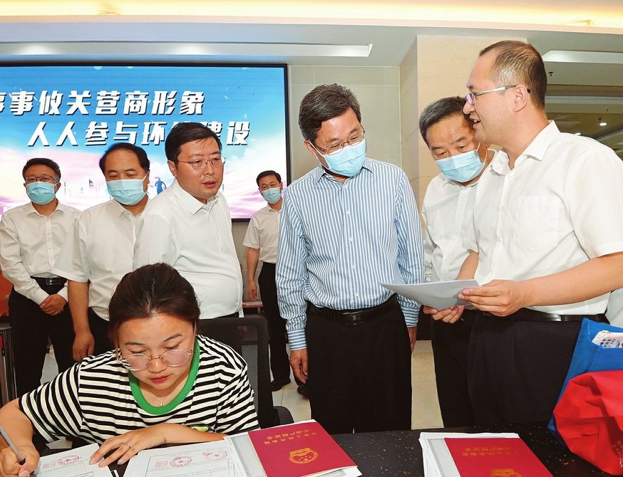6月14日,省委书记蓝佛安在上党区政务服务中心,与工作人员和办事群众亲切交流。记者史晓波摄