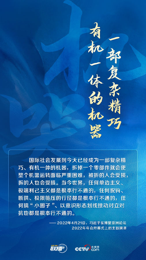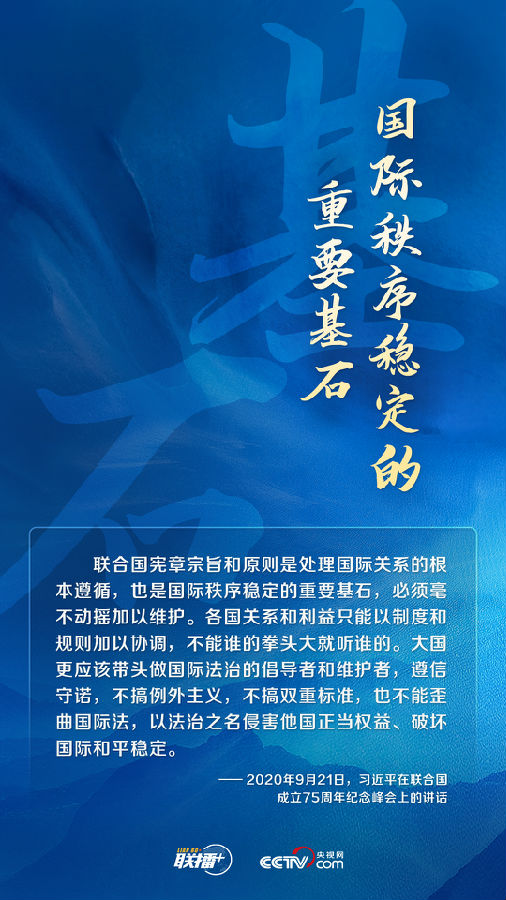 联播+联合国是多边主义的旗帜,以联合国为中心的国际多边架构是国际合作的主要平台。习近平主席在全球安全倡议中主张:坚持遵守联合国宪章宗旨和原则,摒弃冷战思维,反对单边主义,不搞集团政治和阵营对抗。
