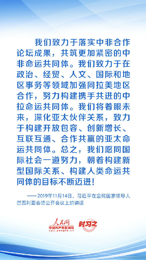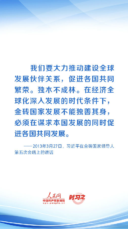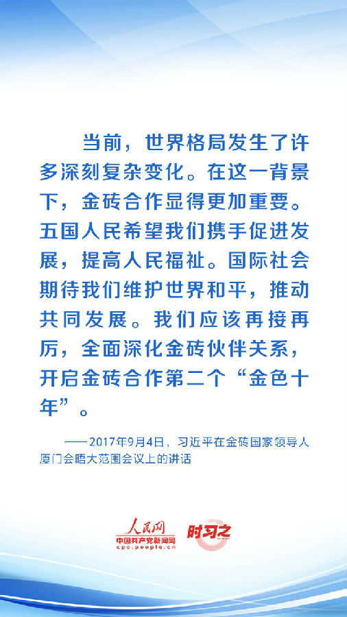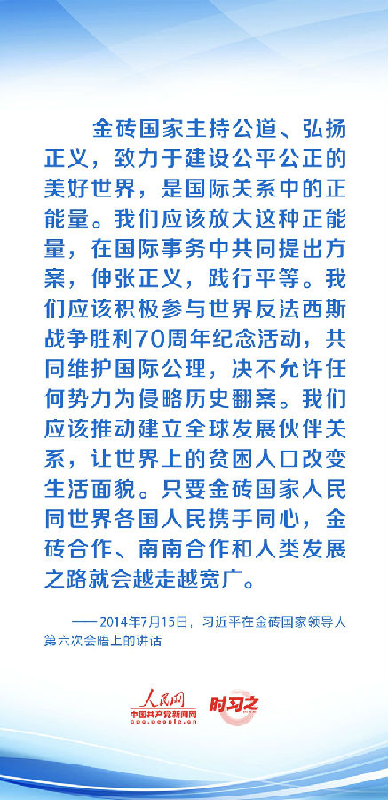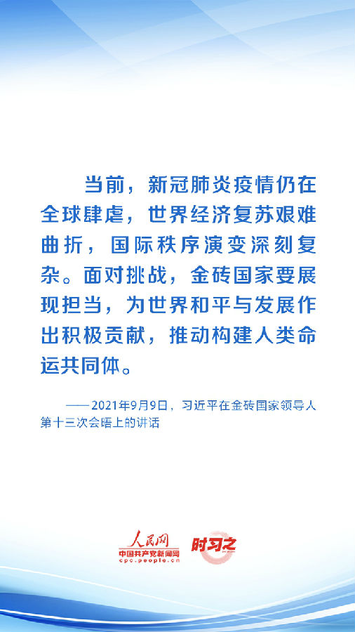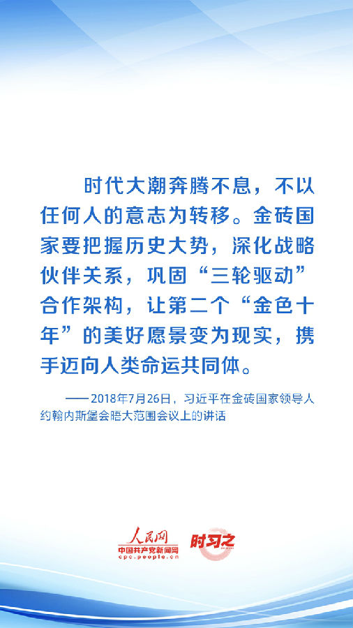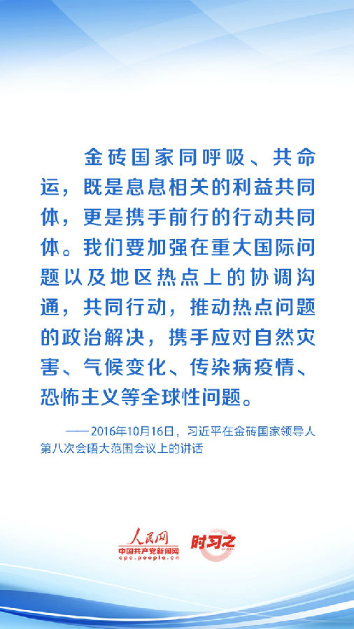 志合者,不以山海为远。2013年以来,习近平主席主持或出席金砖国家领导人历次会晤,共绘金砖合作发展的同心圆,为共创全球发展新时代、推动构建人类命运共同体注入了中国力量。