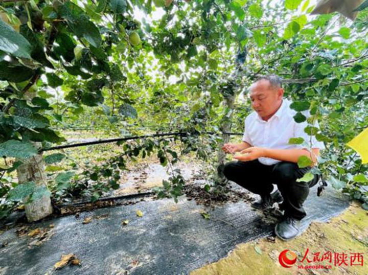 南沟村村民赵永东在果园里。 人民网 白鸽摄