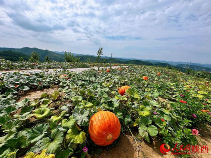 南沟村“塞北牧场”内的航空育种巨型南瓜和观光步道。 人民网 白鸽摄