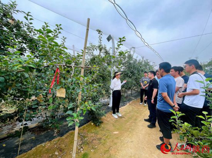 清华大学探微书院11名师生在南沟村苹果矮化密植栽培示范园区进行暑期社会实践活动。 人民网记者 魏鑫摄
