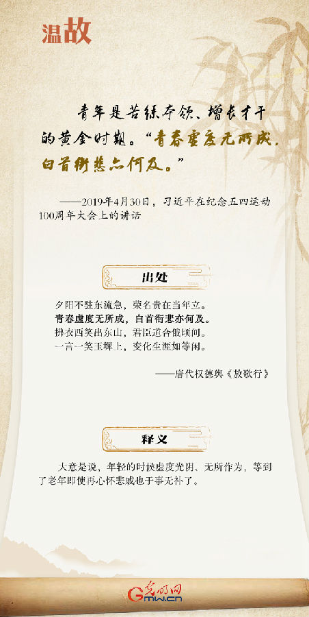 青年都要珍惜韶华、不负青春,努力学习掌握科学知识,提高内在素质,锤炼过硬本领,使自己的思维视野、思想观念、认识水平跟上越来越快的时代发展。又是一年开学季,同学们,请重温习近平总书记的古语寄语,以崭新面貌迎接新学期。