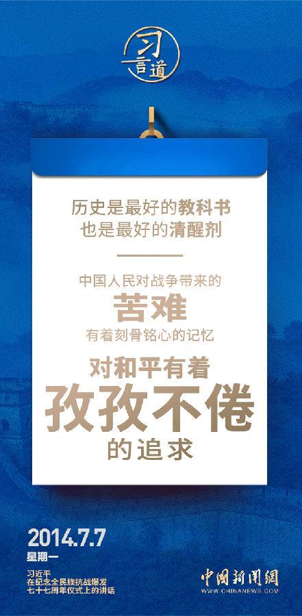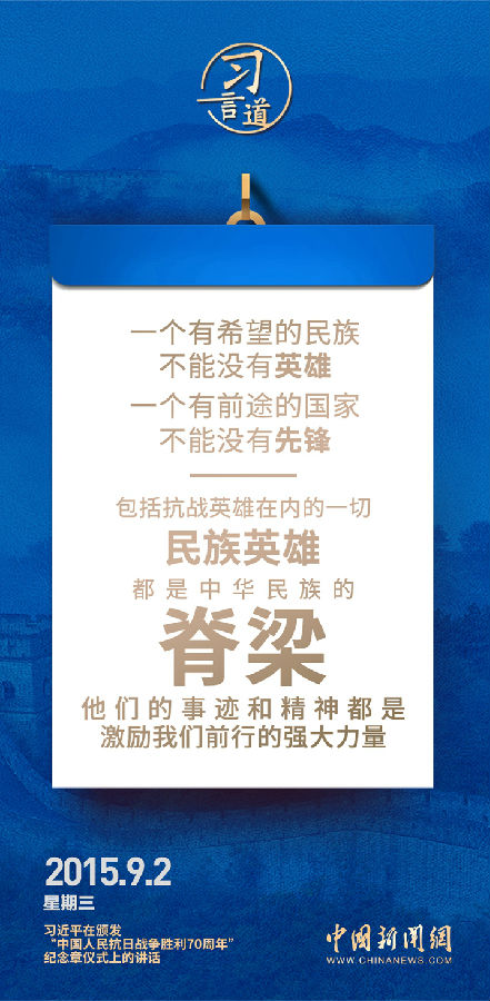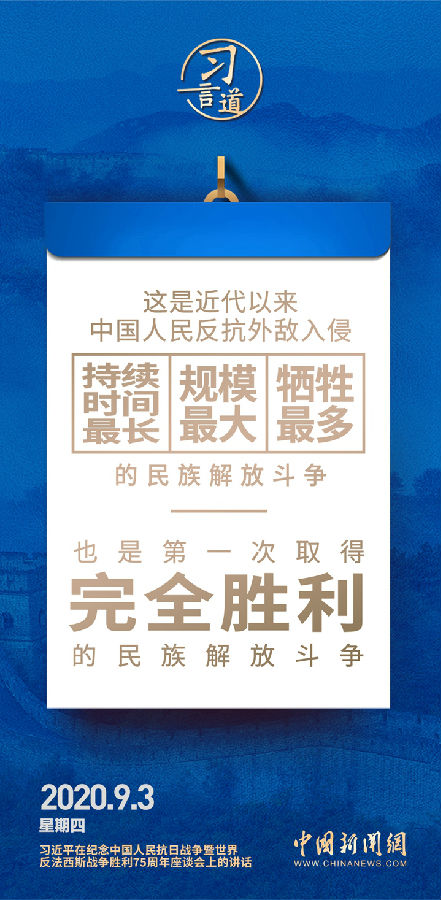 9月3日是中国人民抗日战争胜利纪念日,也是世界反法西斯战争胜利纪念日。习近平总书记关于抗战的论述时刻提醒我们要铭记历史,珍爱和平。