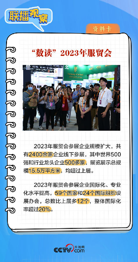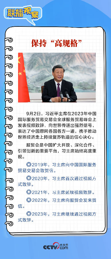 联播+9月2日,2023年中国国际服务贸易交易会在北京开幕。习近平主席向2023年中国国际服务贸易交易会全球服务贸易峰会发表视频致辞,宣布了中国将坚持推进高水平对外开放以及为各国开放合作提供新机遇的重要举措。