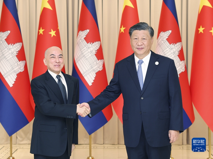 习近平指出,今年是中柬建交65周年和中柬友好年。我同西哈莫尼国王两次会面,体现了中柬亲如一家的深厚情谊。前不久,我在北京会见洪玛奈首相,就传承世代友好、深化全面战略合作达成重要共识。中方珍视同柬埔寨王室的特殊友谊,高度重视中柬关系发展,愿同柬方一道,推动中柬命运共同体建设走深走实。