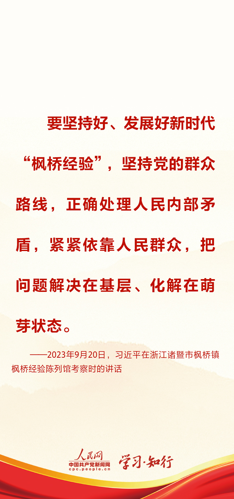 2023年9月20日下午,中共中央总书记、国家主席、中央军委主席习近平来到“枫桥经验”发源地诸暨市枫桥镇,参观枫桥经验陈列馆,了解新时代“枫桥经验”的生动实践。