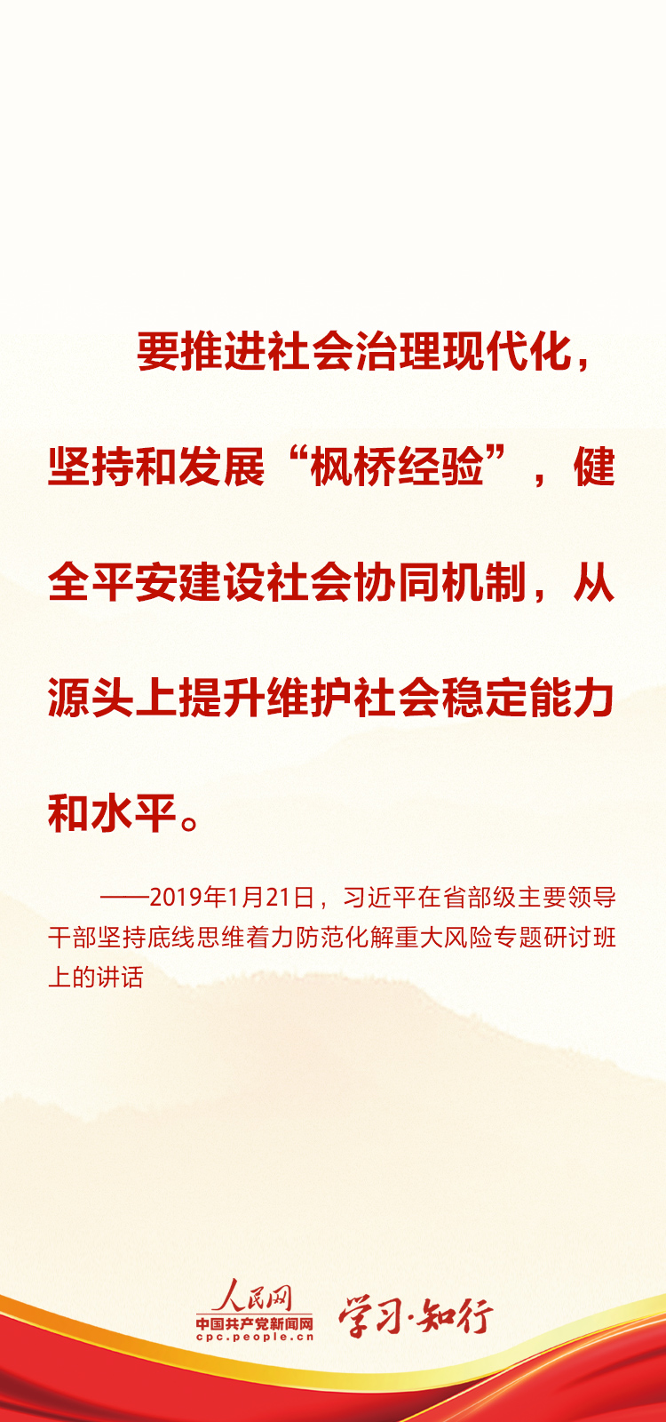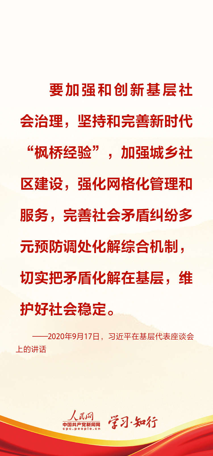 习近平多次对坚持和发展“枫桥经验”作出重要指示,推动新时代“枫桥经验”在基层社会治理中焕发勃勃生机。
