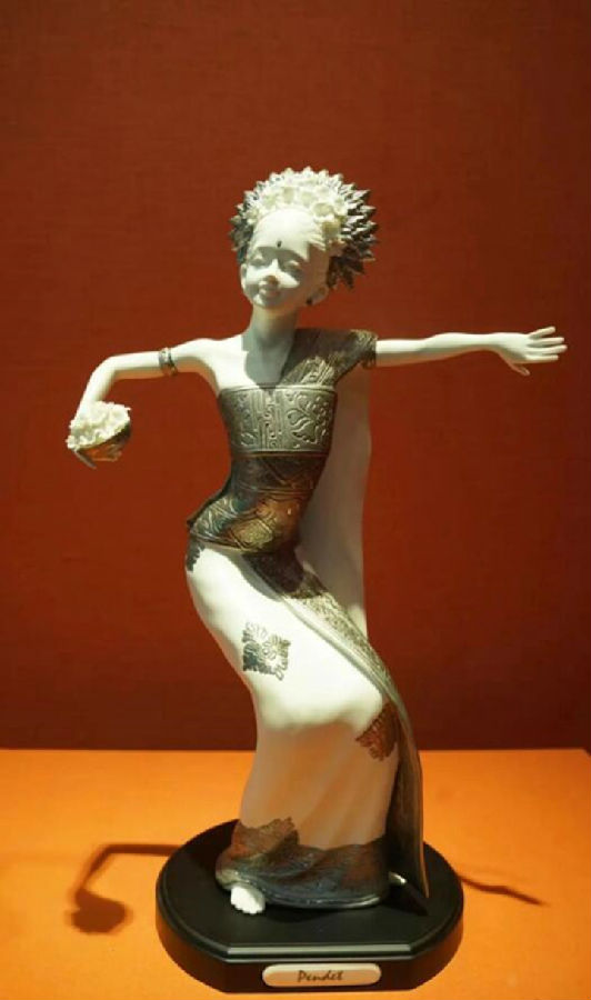 2013年10月,时任印度尼西亚总统苏西洛赠送习近平主席的镶锡瓷塑舞者。