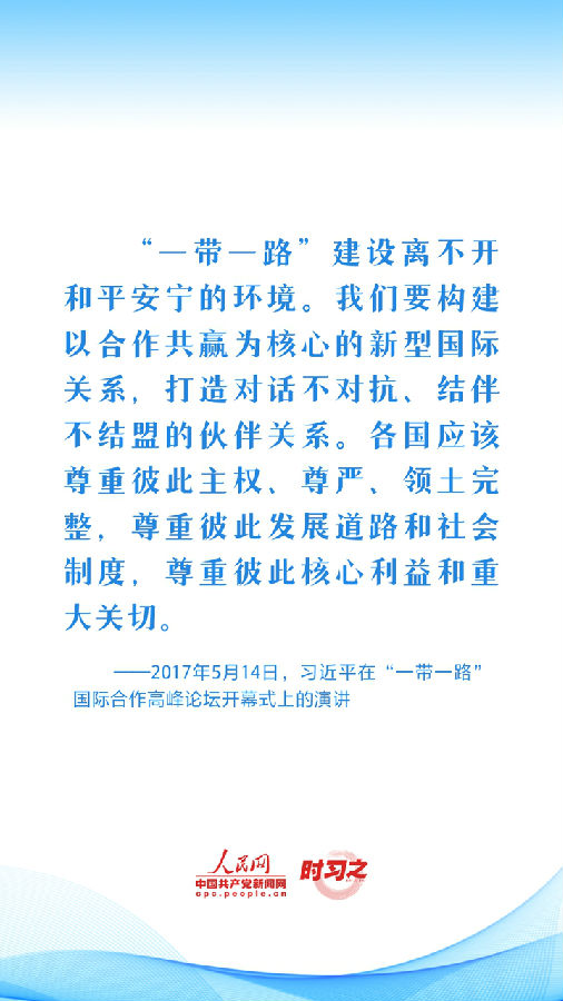 “‘一带一路’建设离不开和平安宁的环境。”习近平主席多次强调和平发展的重要性,推动“一带一路”在和平合作的基础上,营造共建共享的安全格局,将“一带一路”建成和平之路。