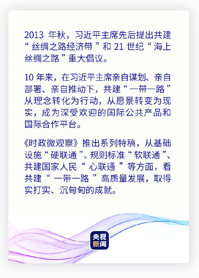 民相亲在于心相通。民心相通,是最基础、最坚实、最持久的互联互通。10年来,一个个项目在共建“一带一路”国家落地开花,拉近了各国人民的心。