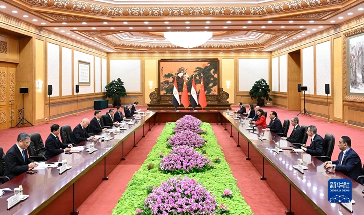习近平指出,埃及是首个同新中国建交的阿拉伯和非洲国家,中埃是志同道合、彼此信任的好朋友,也是携手发展、共同繁荣的好伙伴。10年来,中埃在共建“一带一路”框架内开展了卓有成效的合作。中方支持埃及走符合本国国情的发展道路,愿同埃方深化发展战略对接,鼓励有实力的中国企业赴埃及投资兴业,欢迎更多埃及优质产品进入中国市场。中方愿同埃方落实好第三届“一带一路”国际合作高峰论坛成果,加强基础设施、农业技术、可再生能源等领域合作,扩大人文交流合作,不断推动中埃全面战略伙伴关系发展。