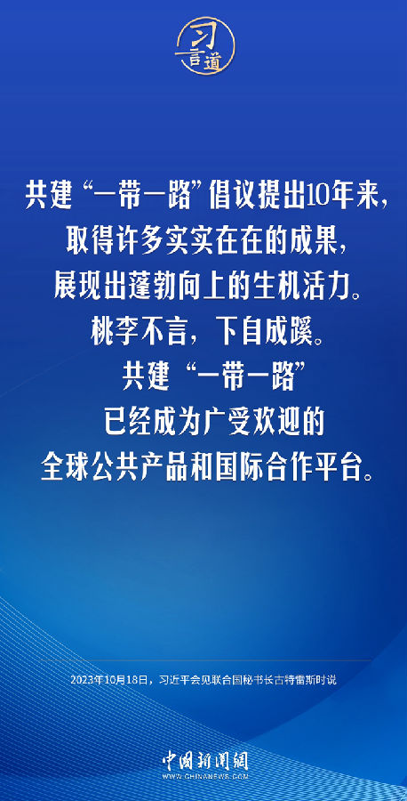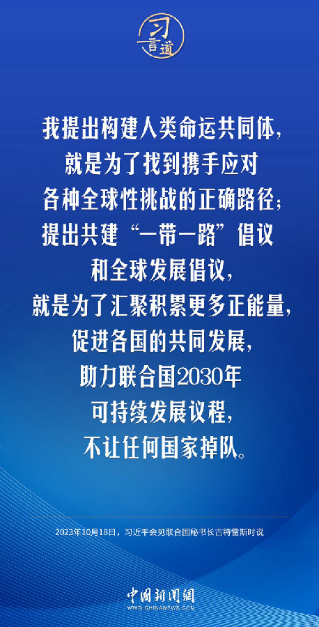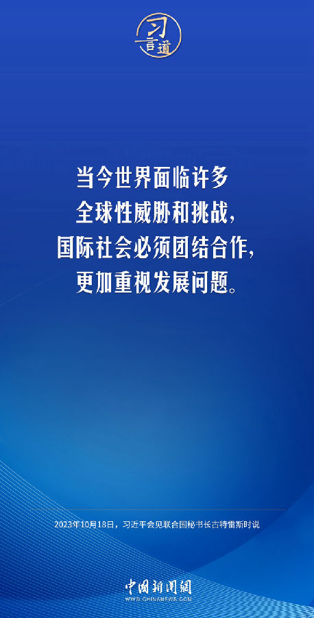 10月18日晚,中国国家主席习近平在人民大会堂会见来华出席第三届“一带一路”国际合作高峰论坛的联合国秘书长古特雷斯。习近平指出——