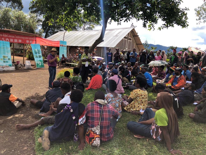△2020年12月15日,中国专家在巴布亚新几内亚东高地省中国援助巴新菌草和旱稻技术项目第9期培训班上授课。