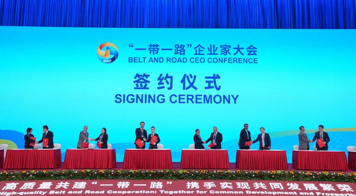 △2023年10月17日,“一带一路”企业家大会签约仪式现场。