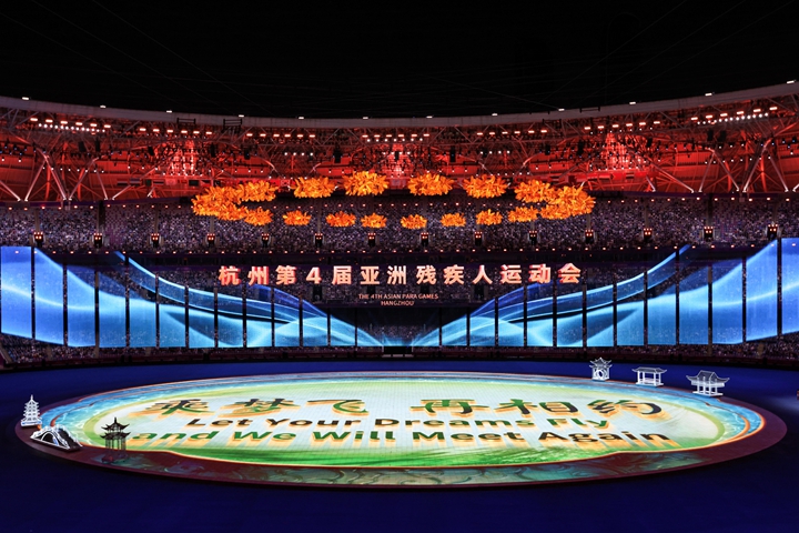 △2023年10月28日,杭州第4届亚洲残疾人运动会闭幕式在杭州奥体中心体育场举行。