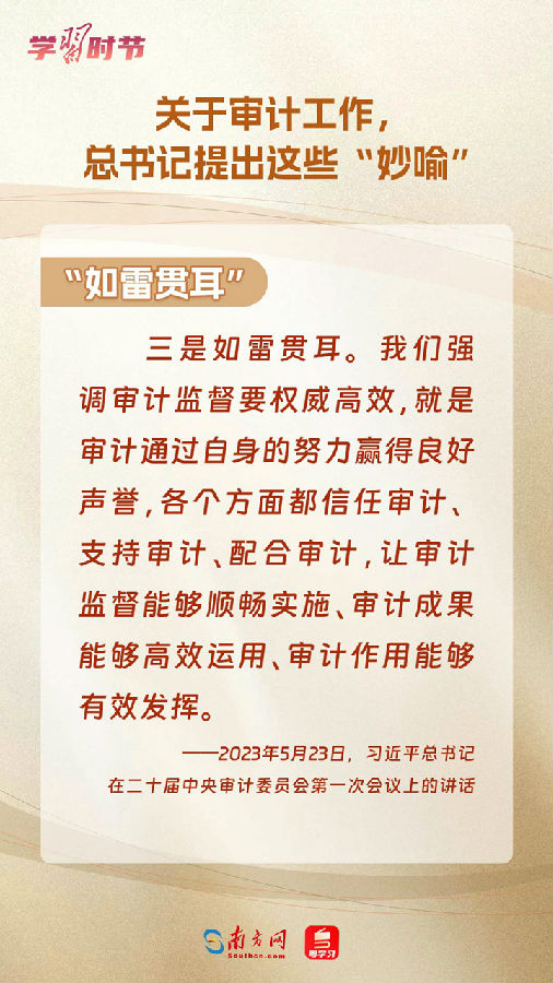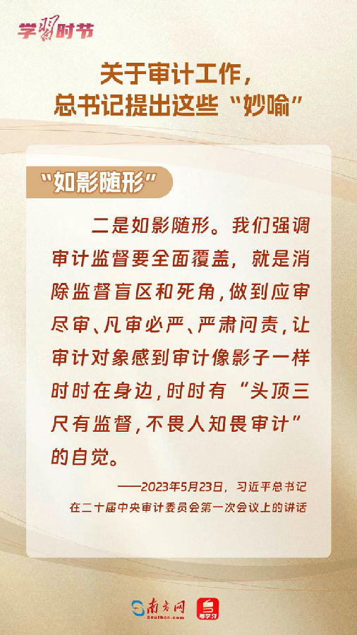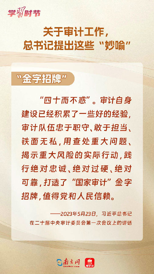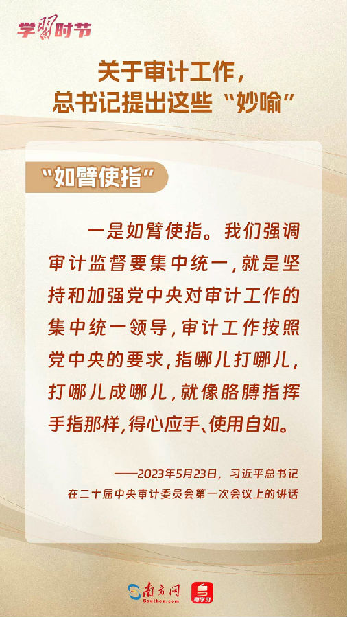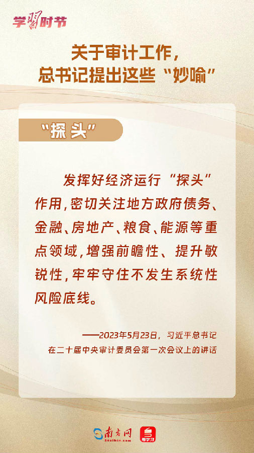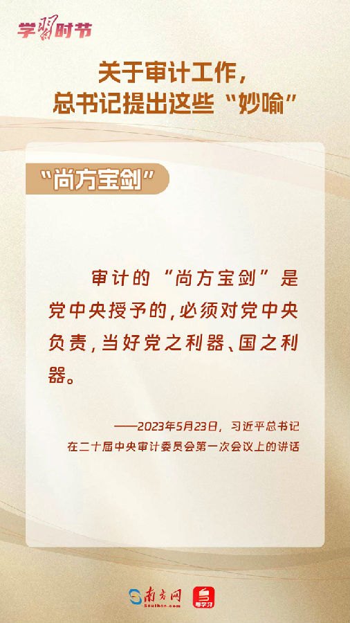 11月1日出版的《求是》杂志刊登了习近平总书记在二十届中央审计委员会第一次会议上的讲话全文。总书记在重要讲话中“妙喻”审计工作,让我们一同学习。