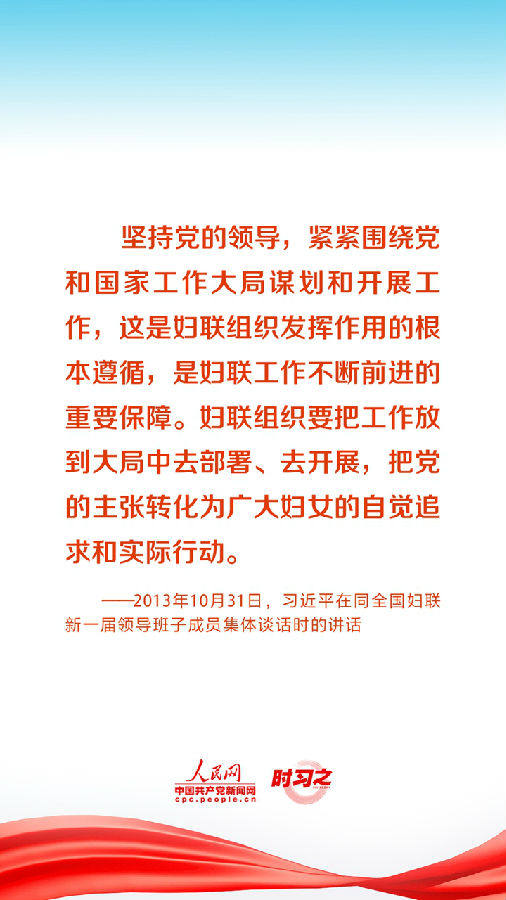中共中央总书记、国家主席、中央军委主席习近平10月30日下午在中南海同全国妇联新一届领导班子成员集体谈话并发表重要讲话。