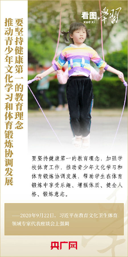 少年强则中国强,体育强则中国强。习近平总书记十分关心关注青少年健康成长,多次强调要坚持健康第一的教育理念,加强学校体育工作,推动青少年文化学习和体育锻炼协调发展。一起来学习!