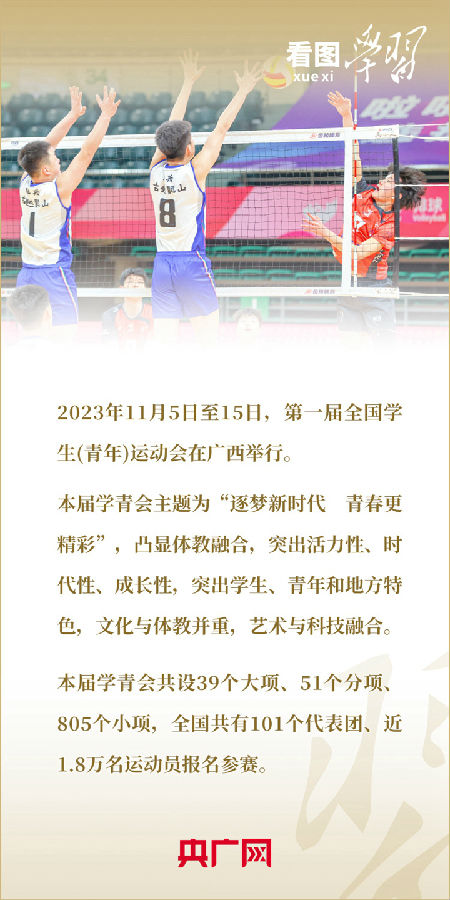 11月5日至15日,第一届全国学生(青年)运动会在广西举行。这是全国青年运动会和全国学生运动会合并后的第一届运动会,是加快体育强国建设、加快健康中国建设、深化体教融合发展、促进青少年健康成长的重要举措。