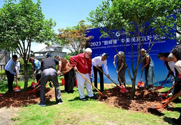 2023年6月28日,出席“鼓岭之友”座谈会的中美各界人士在鼓岭共同植树留念。