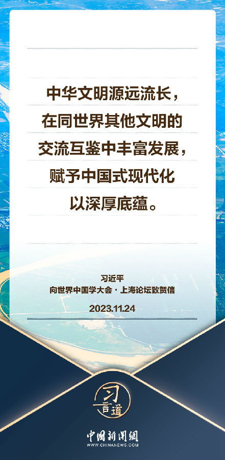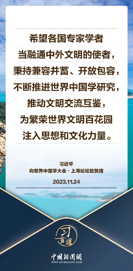 11月24日,国家主席习近平向世界中国学大会•上海论坛致贺信。习近平指出——