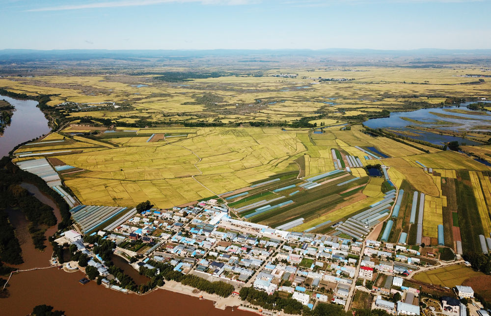 这是2023年9月13日拍摄的黑龙江省宁安市渤海镇小朱家村附近的稻田(无人机照片)。新华社记者 王建威 摄