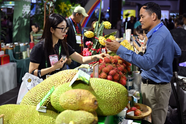 2023年12月14日,第26届中国(海南)国际热带农产品冬季交易会展出的热带水果。新华社记者郭程 摄