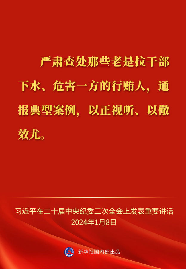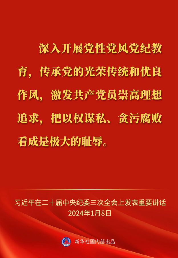 中共中央总书记、国家主席、中央军委主席习近平8日上午在中国共产党第二十届中央纪律检查委员会第三次全体会议上发表重要讲话,一起来看金句。
