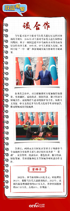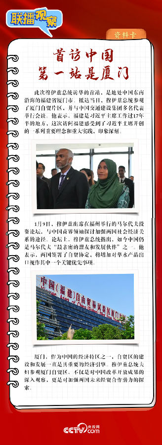 联播+ 1月10日,习近平主席在人民大会堂同来华进行国事访问的马尔代夫总统穆伊兹举行会谈。两国元首宣布,将中马关系提升为全面战略合作伙伴关系。央视网《联播观察》带您读懂新年首位外国元首访华背后的深意。