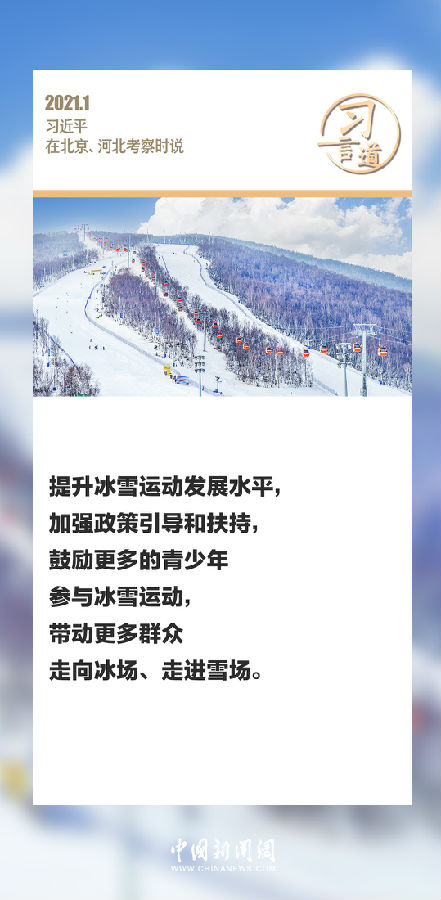 习近平总书记高度重视冰雪运动的普及和发展,多次作出重要论述,强调把群众冰雪运动热情保持下去。