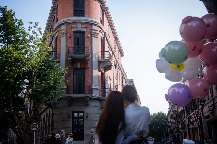 2023年6月6日,游客在武汉市汉口历史风貌区巴公房子前拍照。随着汉口历史风貌区旧城改造城市更新项目的推进,风貌区内一座座老建筑被修缮、改造,融入现代生活,焕发新的生命。新华社记者 伍志尊 摄