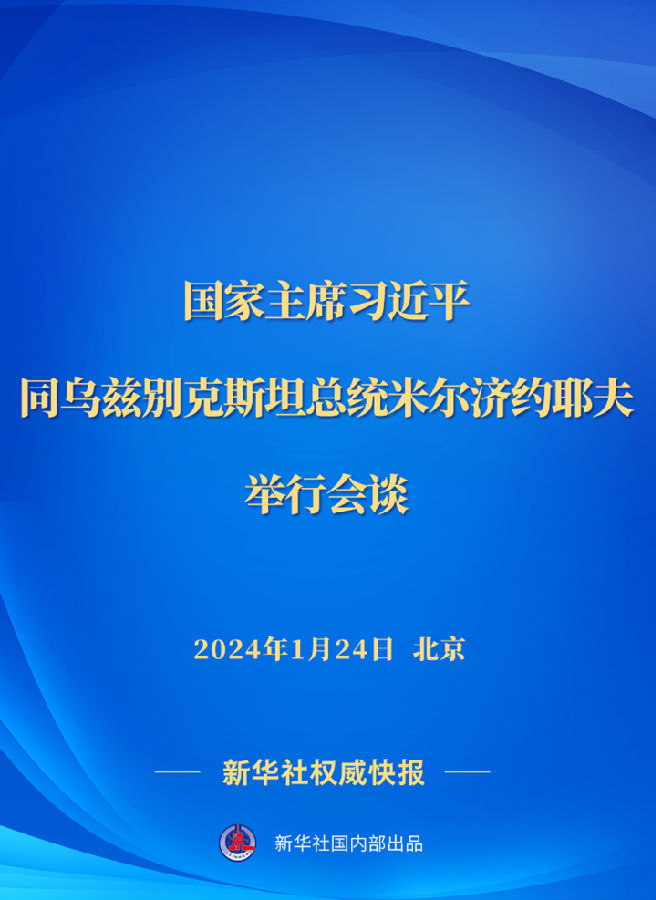1月24日下午,国家主席习近平在人民大会堂同来华进行国事访问的乌兹别克斯坦总统米尔济约耶夫举行会谈。