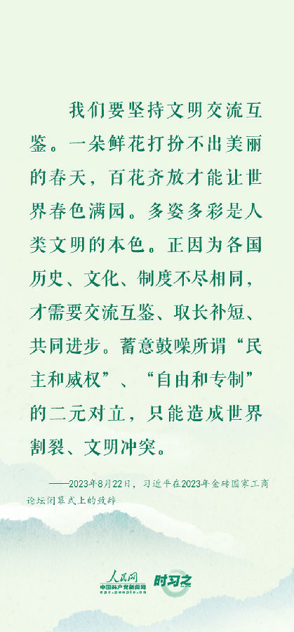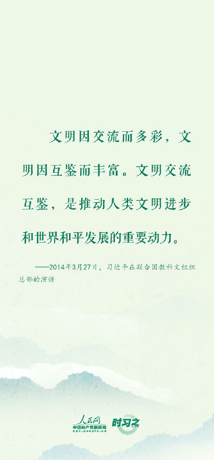 文化因交流而多彩,文明因互鉴而丰富。习近平在不同场合多次发表重要讲话,推动不同国家、不同民族、不同文化间加强交流互鉴,共同绘就美美与共的人类文明画卷。