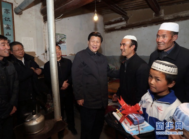 2013年2月2日至5日,习近平总书记来到甘肃,看望慰问各族干部群众,并向全国各族人民表达美好的新春祝福。2月3日,习近平来到东乡族自治县布愣沟村困难群众马麦志家中看望,并给马麦志的两个儿子带来了学习用品。新华社记者