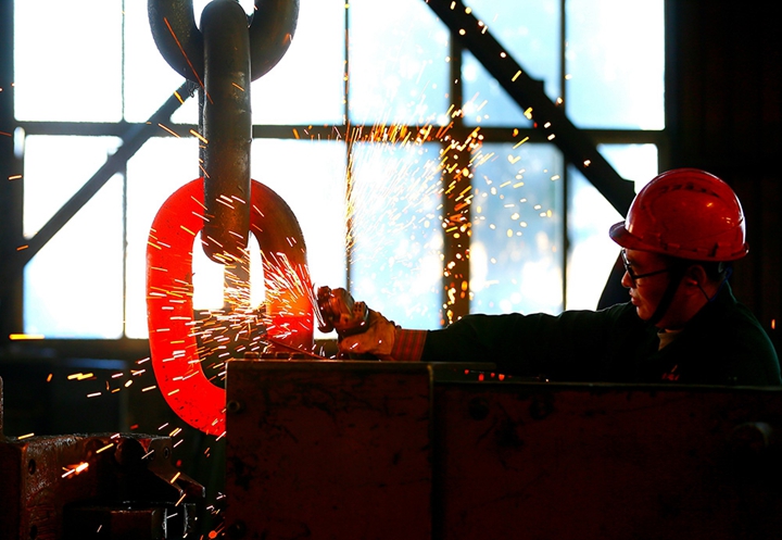 △ 2024年2月17日,青岛市,即墨区灵山街道一家锚链企业,工人正在忙碌。