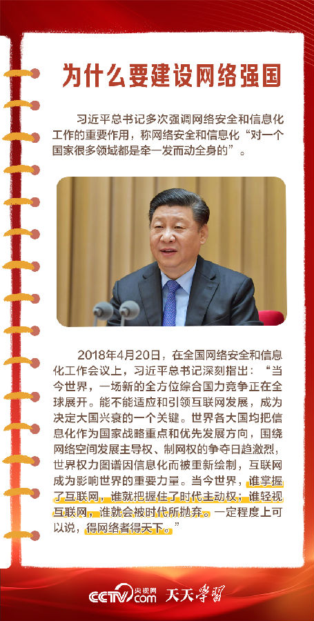 为何要建设网络强国?总书记谋划了一条怎样的网络强国之路?央视网《天天学习》与您一起学习思考。