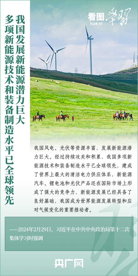 能源安全事关经济社会发展全局。2月29日,习近平总书记在中共中央政治局第十二次集体学习时强调,我们要顺势而为、乘势而上,以更大力度推动我国新能源高质量发展,为中国式现代化建设提供安全可靠的能源保障,为共建清洁美丽的世界作出更大贡献。一起来学习!