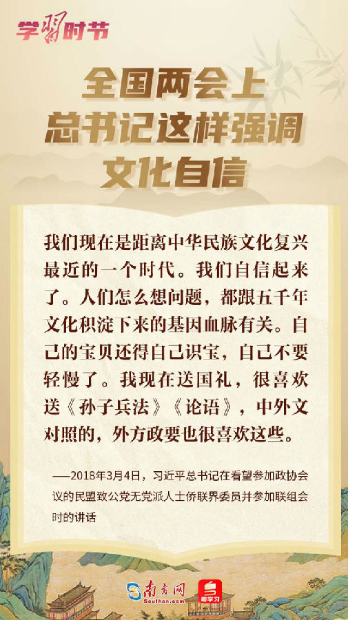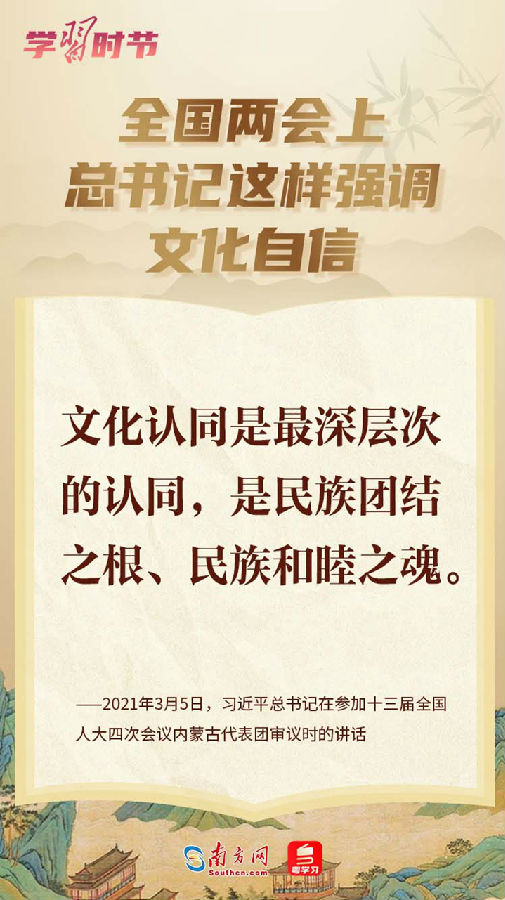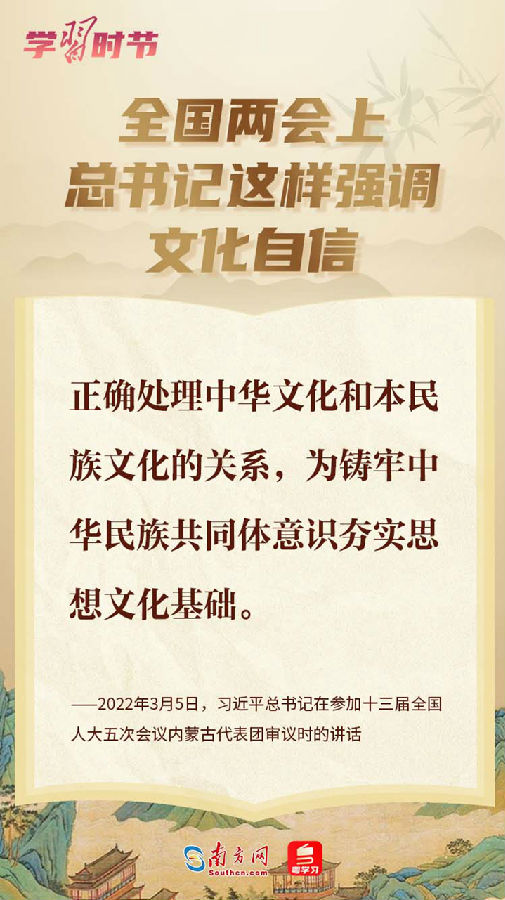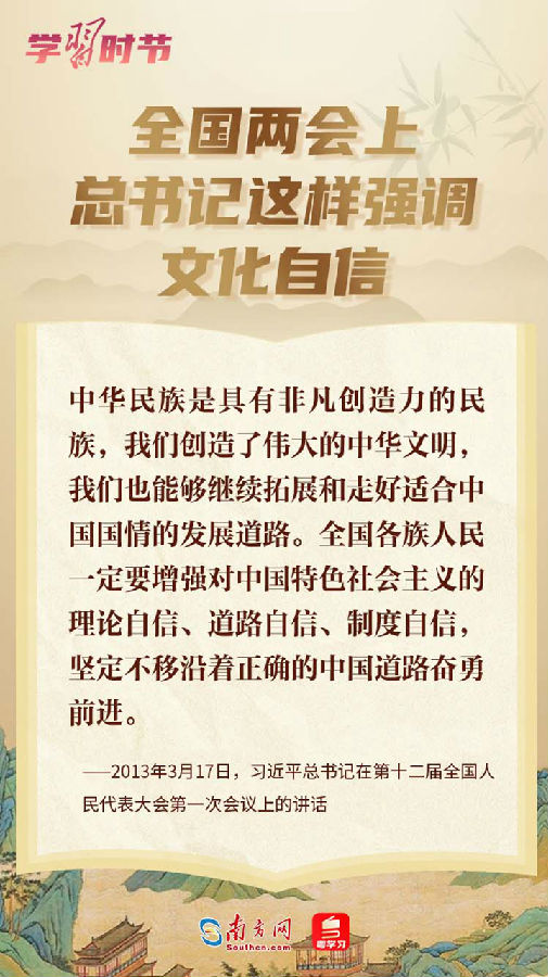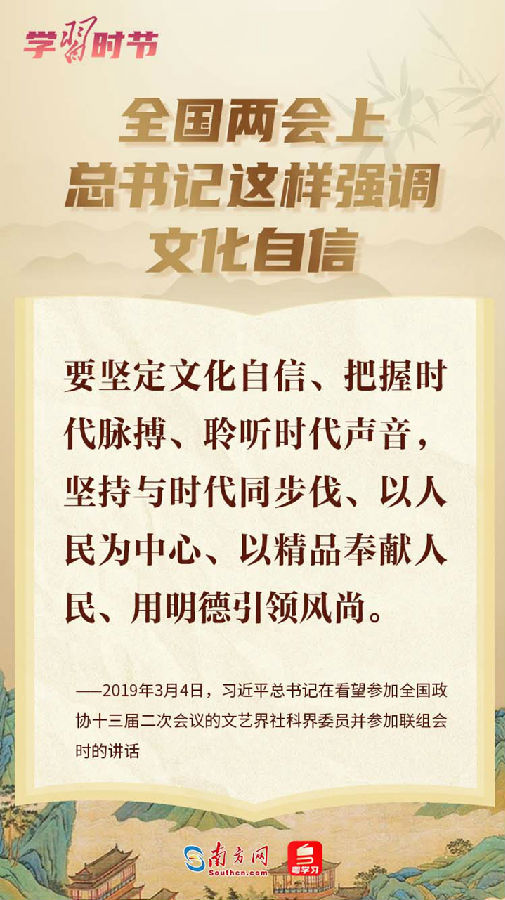 今年政府工作报告提出“深入学习贯彻习近平文化思想”。“坚定文化自信”“大力提升国家文化软实力”“建设社会主义文化强国、不断铸就中华文化新辉煌”……党的十八大以来,习近平总书记在全国两会上就文化建设发表一系列重要讲话,为实现中华民族伟大复兴注入强大精神动力。