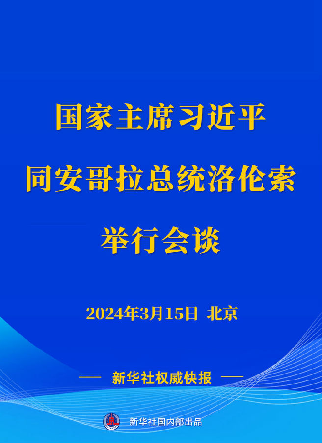 中安传统友好。去年,两国共同庆祝建交40周年。当前,中安关系发展势头良好,政治互信持续深化,务实合作成果丰硕,切实惠及两国人民。相信洛伦索总统此访将为中安关系全面深入发展注入新动力,推动两国友好合作不断取得新进展。