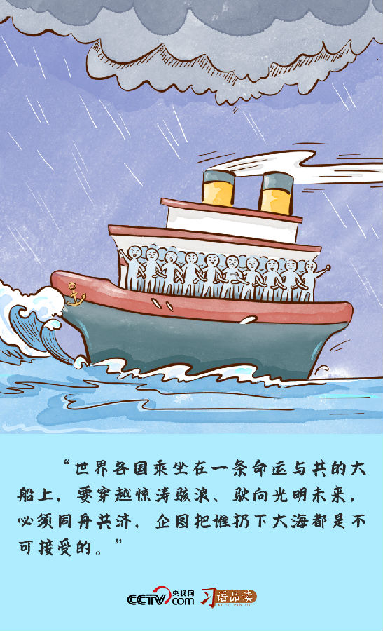 “不能谁的拳头大就听谁的”“不能由个别国家的单边主义给整个世界‘带节奏’”“不搞例外主义,不搞双重标准,也不能歪曲国际法”……在不同国际场合,习主席鲜明表达中国立场,在一艘大船上必须同舟共济,“企图把谁扔下大海都是不可接受的”。