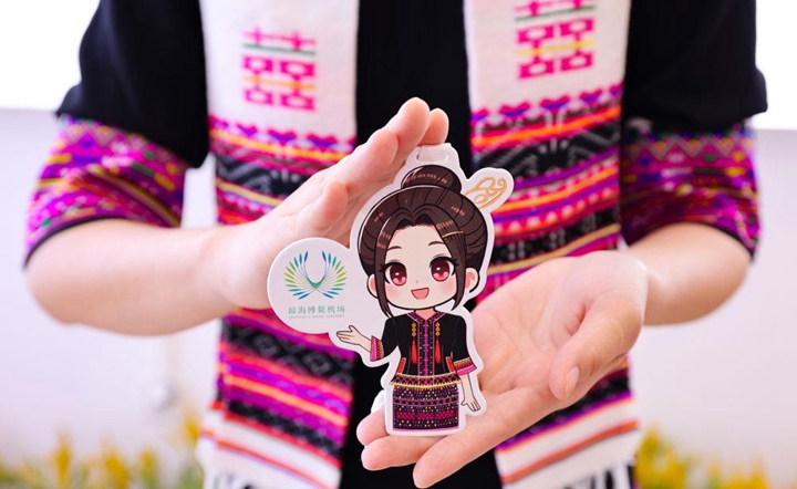 △2024年3月22日,博鳌机场工作人员展示“博鳌香”香氛卡片。
