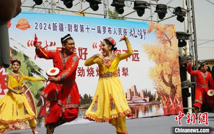 5月1日,新疆·尉犁第十一届罗布人民俗烧烤节开幕现场。邓雅兮 摄