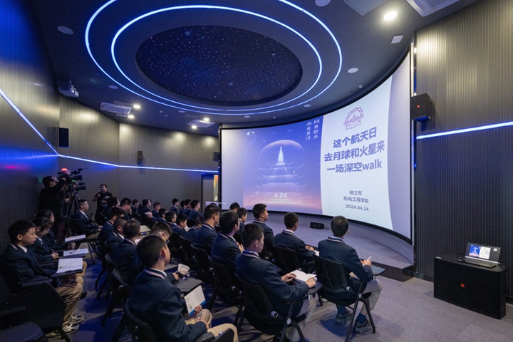 学生在哈尔滨工业大学航天馆内听中国航天日主题讲座(2024年4月24日摄)。新华社记者 谢剑飞 摄
